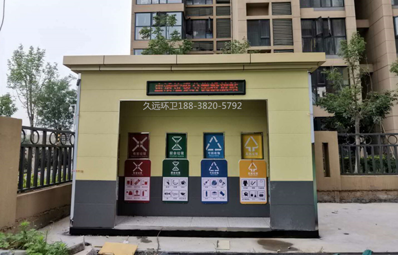 生活垃圾分類投放站廠家定制——久遠(yuǎn)環(huán)衛(wèi)是一家集研發(fā)生產(chǎn)、銷售服務(wù)為一體的大型環(huán)衛(wèi)設(shè)備生產(chǎn)企業(yè),公司注冊(cè)資金5000萬元,占地面積50余畝,擁有現(xiàn)代化生產(chǎn)車間1萬余平方米,辦公面積1000余平方米,在職員工200多人,具有雄厚的技術(shù)及生產(chǎn)實(shí)力。 公司主要生產(chǎn)垃圾壓縮中轉(zhuǎn)站、垃圾分類收集房、環(huán)保移動(dòng)公廁、各類垃圾桶果皮箱、環(huán)衛(wèi)工具箱、環(huán)衛(wèi)道班房、崗?fù)ぁ⑿蓍e座椅、等公共環(huán)衛(wèi)設(shè)施。